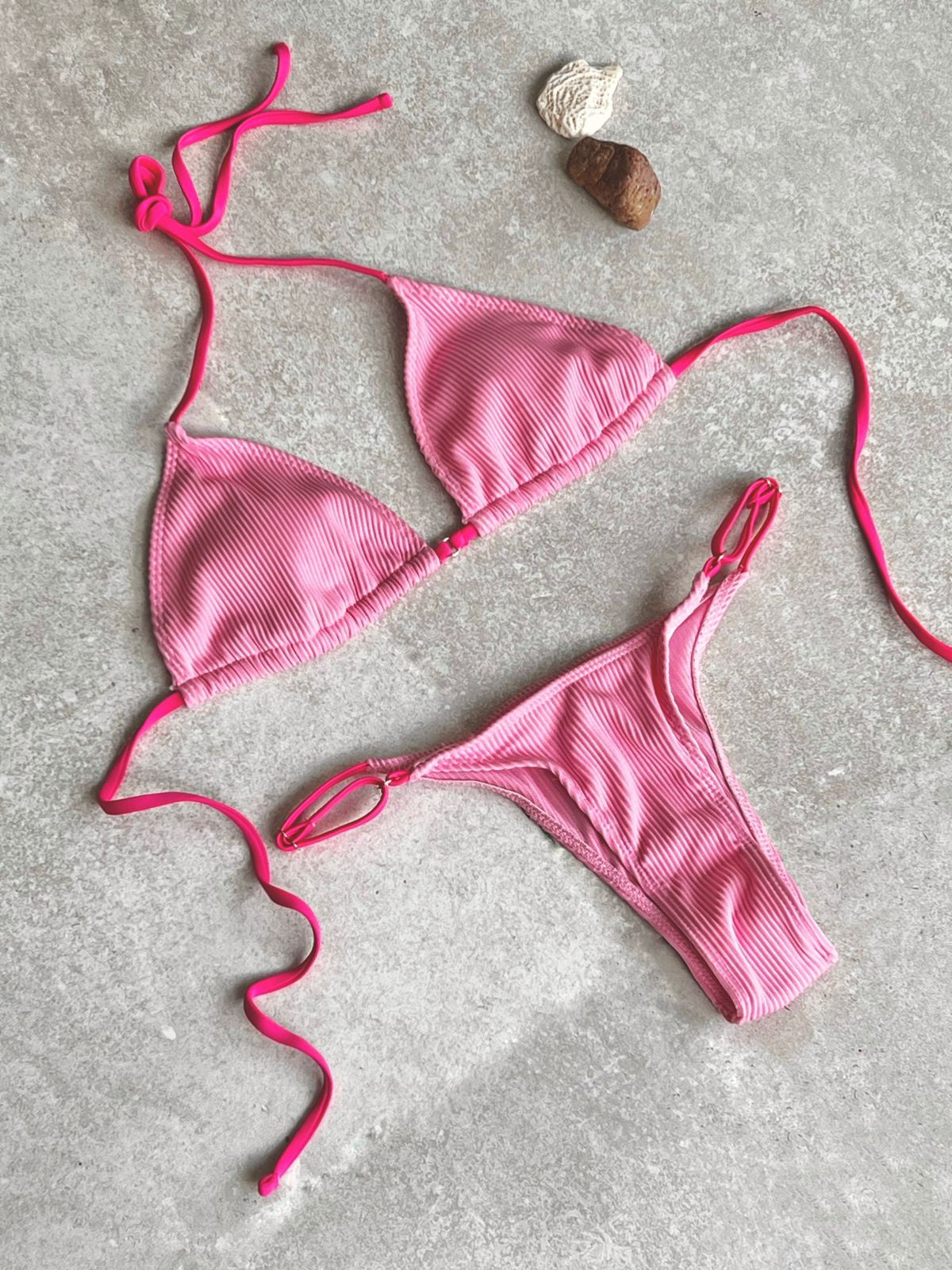 Bikini de canalé con tirantes.